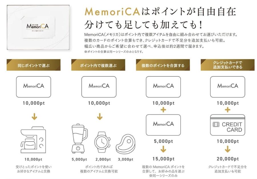 新しい贈り物のカタチ ポイント型ギフトカード MemoriCA(メモリカ)。
