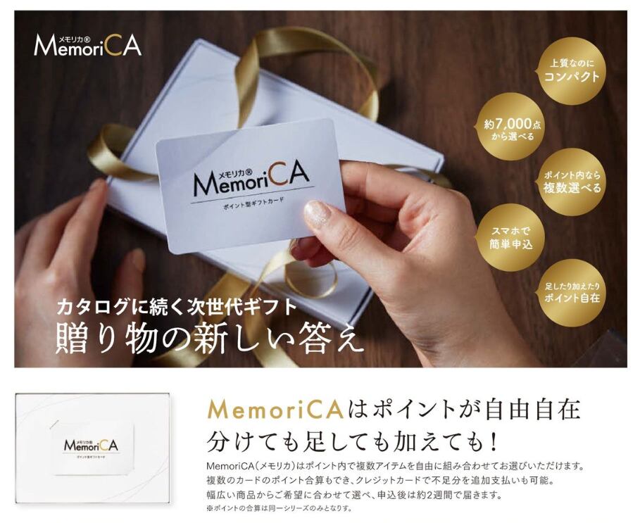 新しい贈り物のカタチ ポイント型ギフトカード MemoriCA(メモリカ)。